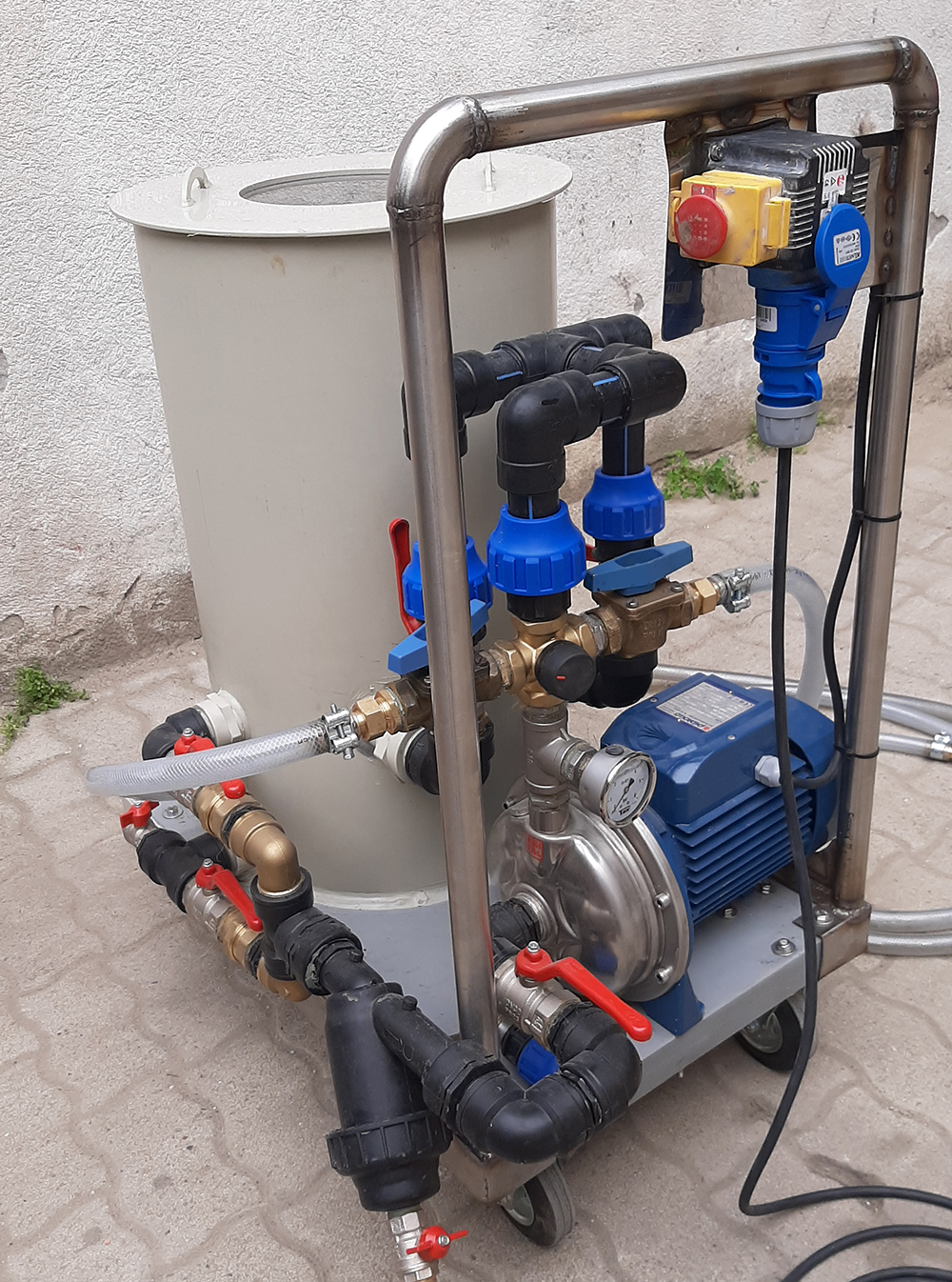 Szivattyú: 230V / 2,2 Kw teljesítményű saválló műanyagházas szivattyú.